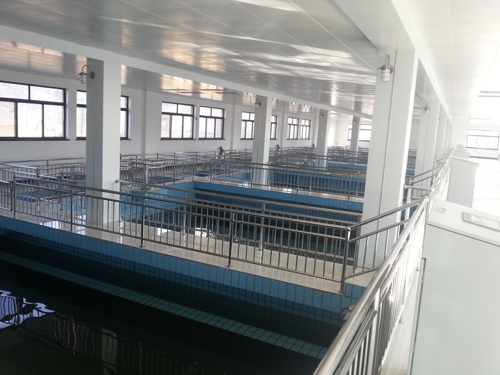 工程規(guī)模:建設規(guī)模5萬m3/d,將現(xiàn)有折板反應+斜管沉淀+普通快濾池工藝(2.5萬m3/d ),隔板反應+斜管沉淀+無閥濾池(1.9萬m3/d ),水力循環(huán)澄清池+無閥濾池(0.6萬m3/d )三個序列凈水設施整合改造為以平流沉淀池+V型濾池為主的凈水工藝,出水水質滿足《生活飲用水衛(wèi)生標準》(GB5749-2006)的要求。